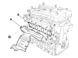 Снимите выпускной коллектор (А) с прокладкой (В).