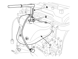 Снимите крышку топливного бака (А), предварительно ослабив винты (2 шт.).