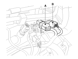 Отсоедините разъем переднего кислородного датчика (А) и задний кислородный датчик.