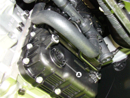 Снимите отверстие для впрыска ATF (болт с проушиной) (A).