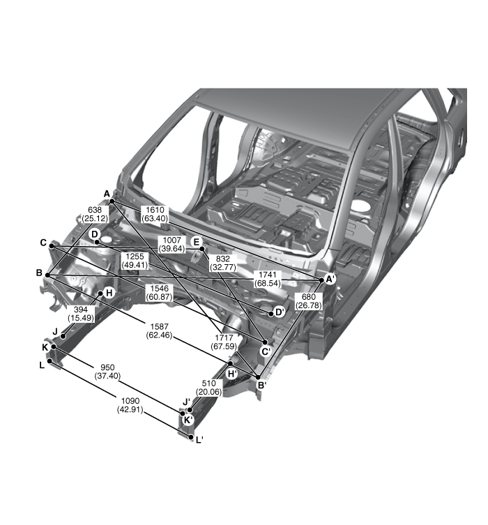 Kia Sorento: Front Body B - Body Dimensions - Body (Interior and Exterior) - Kia Sorento XM 2011-2023 Service Manual Kia Sorento: передний кузов B