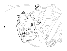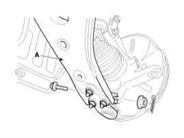 Снимите крепежный болт и гайку нижнего рычага (А) с поворотного кулака.