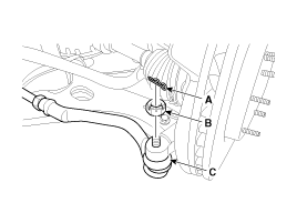Снимите шаровой шарнир наконечника рулевой тяги (С) с поворотного кулака.