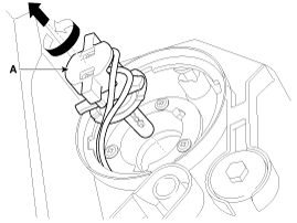 Подсоедините отрицательную (-) клемму аккумуляторной батареи...