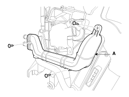 Снимите крышку радиатора отопителя (А) после ослабления крепления.