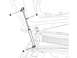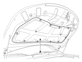 Отсоедините зажимы, затем снимите уплотнитель капота (А).