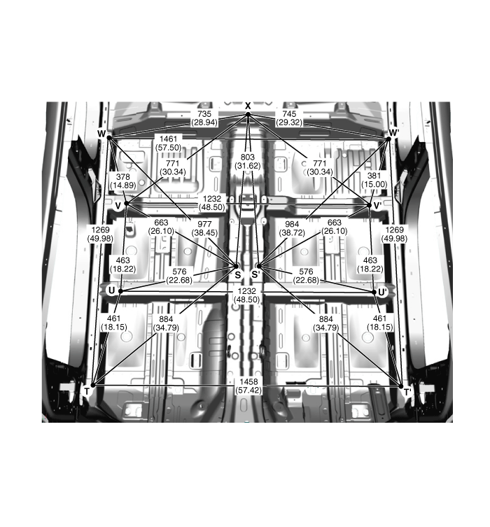 XM второго поколения (2011-2023 гг.) / Kia Sorento XM 2011-2023 Руководство по ремонту / Кузов (внутри и снаружи) / Размеры корпуса / Интерьер С