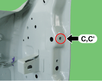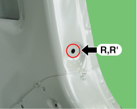 Отверстие для крепления ответной планки задней двери (Ø13)