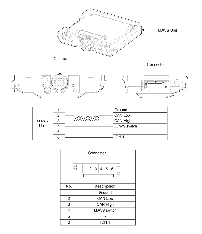 Kia Sorento: Компоненты блока системы предупреждения о выходе из полосы движения (LDWS)