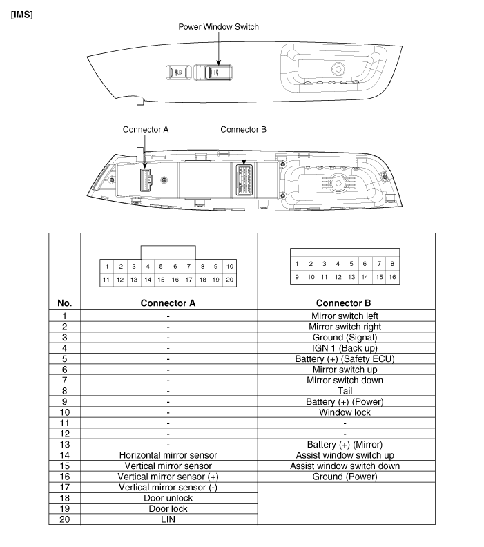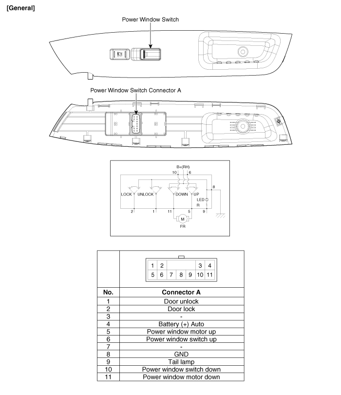 Kia Sorento: Компоненты переключателя стеклоподъемников