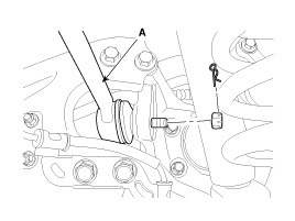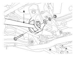 Ослабьте болт и гайку и снимите задний вспомогательный рычаг (А).