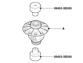 С помощью SST (09453-3B200) установите передний/задний подшипник (A).