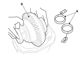 Установите прокладку подшипника ведущей шестерни (В) на ведущую шестерню.