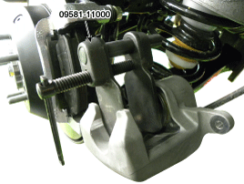 Вдавите поршень в корпус суппорта с помощью SST (09581-11000).