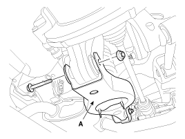 Ослабьте болт и гайку и снимите задний нижний рычаг (А) с