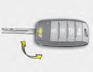 Чтобы сложить ключ, сложите его вручную, удерживая нажатой кнопку фиксатора.