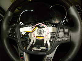 Отсоедините разъем и стопорную гайку (А), затем снимите рулевую колонку.