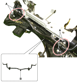 Ослабьте болт (A-4ea) и снимите стабилизатор поперечной устойчивости (B).