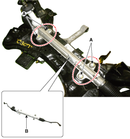Снимите рулевой редуктор (В) с поперечины, ослабив