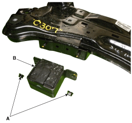 Ослабьте гайку (A-2ea) и снимите демпфер подрамника (B).