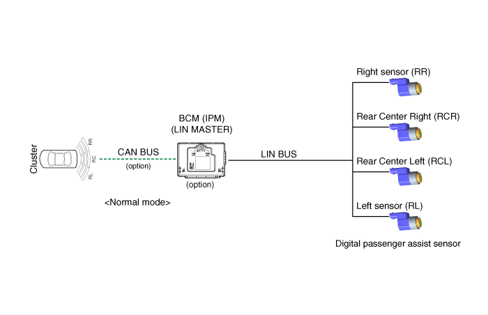 В случае информации датчика RL/RR, BCM обрабатывает информацию каждого датчика.