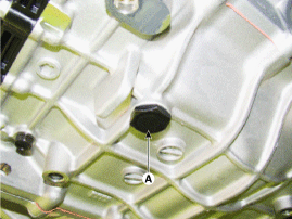Снимите отверстие для впрыска ATF (болт с проушиной) (A).