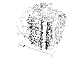 Снимите отверстие для впрыска ATF (болт с проушиной) (A).