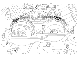 Совместите установочные метки (A) на цепях привода ГРМ и звездочках CVVT.
