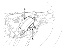 Снимите верхний переключатель управления на рулевом колесе (В), отсоединив разъем (А).