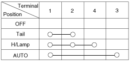 Включите переключатель автоматического освещения, затем проверьте целостность цепи между клеммами разъема многофункционального переключателя.