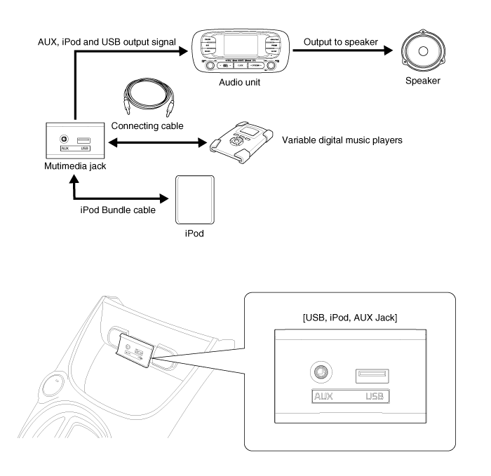 аудиосистема автомобиля, когда она подключена к этому разъему.