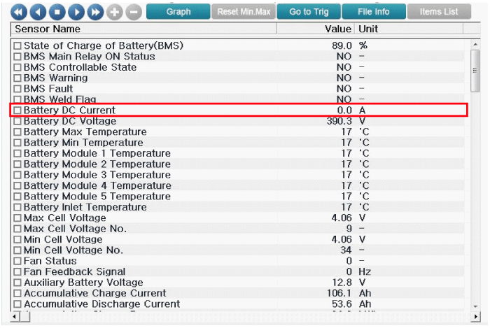 Проверьте «Ток аккумуляторной батареи» в служебных данных GDS.