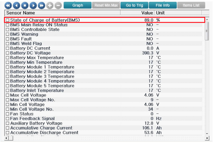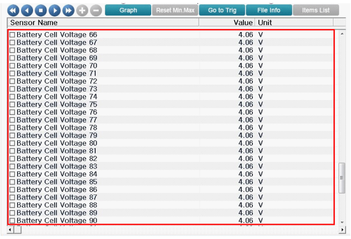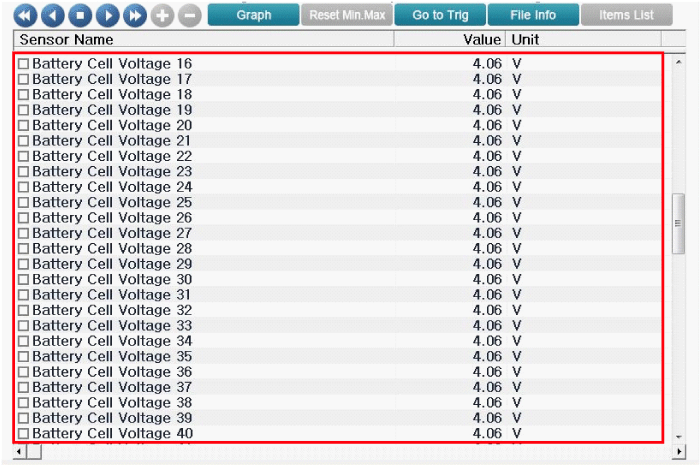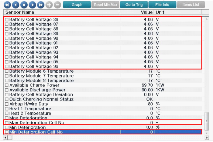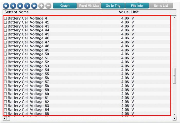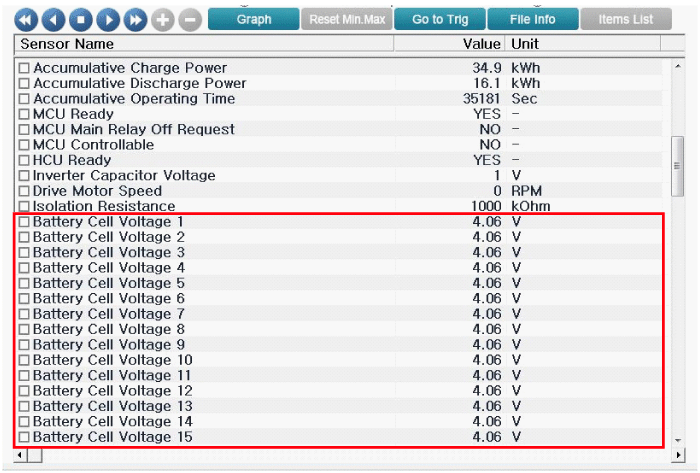 Проверьте Cell Voltage и Pack Voltage в служебных данных GDS.