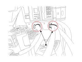 Снимите зажимы крепления распределительной коробки в салоне (А).