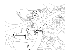 Отсоедините отрицательную (-) клемму аккумуляторной батареи.