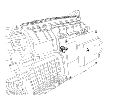 Ослабьте болты крепления блока отопителя и вентилятора (А).