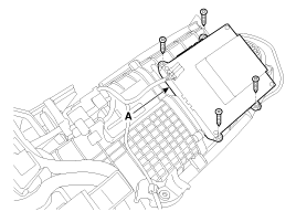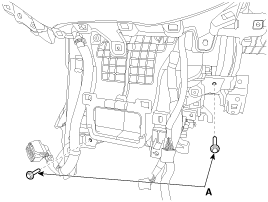 Отсоедините разъем (А) модуля управления подушками безопасности (SRSCM).