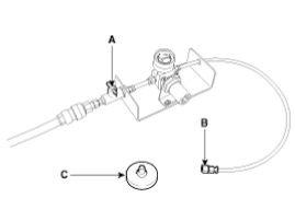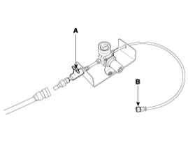 Убедитесь, что обратный клапан (A) закрыт, а затем подсоедините SST (09580-3D100) (A) к адаптеру (B).