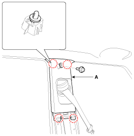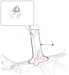 С помощью отвертки или съемника снимите нижнюю облицовку центральной стойки (А).