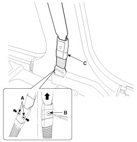 Чтобы снять преднатяжитель анкера ремня безопасности (C), продолжайте нажимать