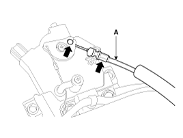 Снимите трос привода устройства открывания дверцы зарядного устройства (А).
