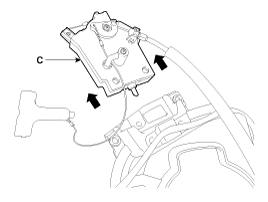 Снимите привод устройства открывания дверцы загрузки (С) после ослабления крепежных болтов (А) и винтов (В).