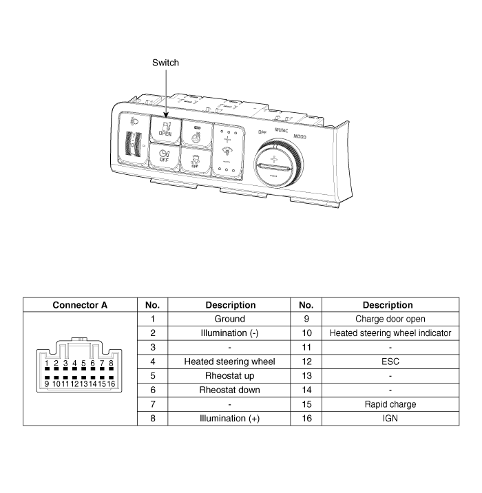 Выключатель исполнительного механизма устройства открывания дверцы зарядки Процедуры ремонта