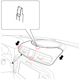 Используя плоскую отвертку или съемник, снимите центральную вентиляционную панель (A) подушки безопасности.