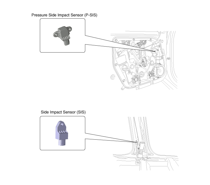 9. Шторка безопасности (CAB) 10. Модуль управления дополнительной удерживающей системой (SRSCM) 11. Сигнальная лампа подушки безопасности 12. Устройство аварийного крепления (EFD) 13. Датчик бокового удара давления (PSIS) |