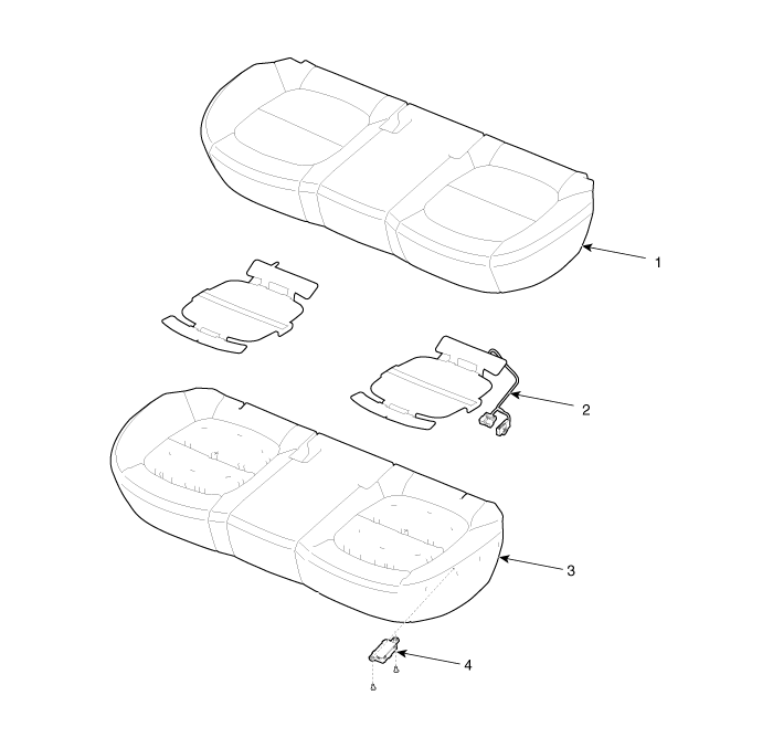 Компоненты заднего сиденья в сборе и расположение компонентов