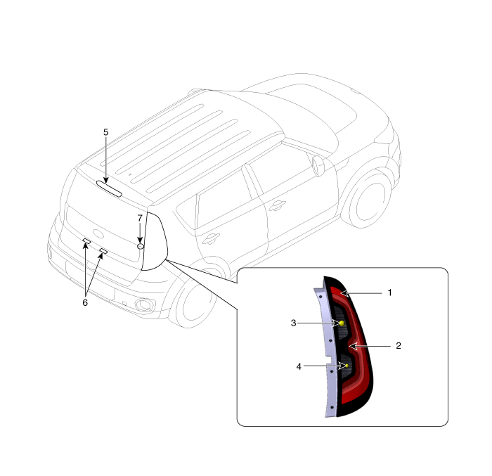6. Подсветка номерного знака 7. Лампа багажного отделения |