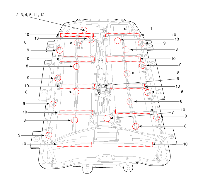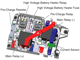 9. Устройство для задержания беглецов (RAD) 10. Нагреватель высоковольтной батареи (с системой обогрева) 11. Реле нагревателя высоковольтной батареи (с системой нагревателя) 12. Предохранитель нагревателя высоковольтной батареи (с системой нагревателя) 13. Датчик температуры нагревателя высоковольтной батареи (с системой нагревателя) |
