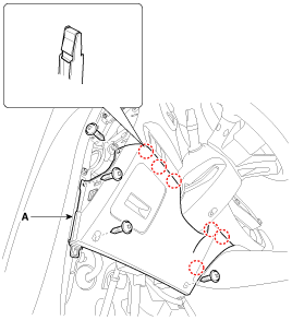 С помощью отвертки или съемника снимите боковую крышку аварийной подушки [LH] (A).