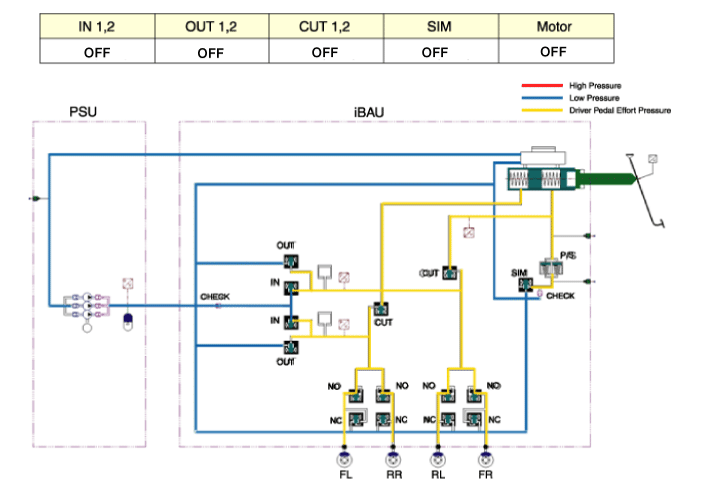 клапан IN закрывается, возвращая высокое давление тормозного масла обратно в